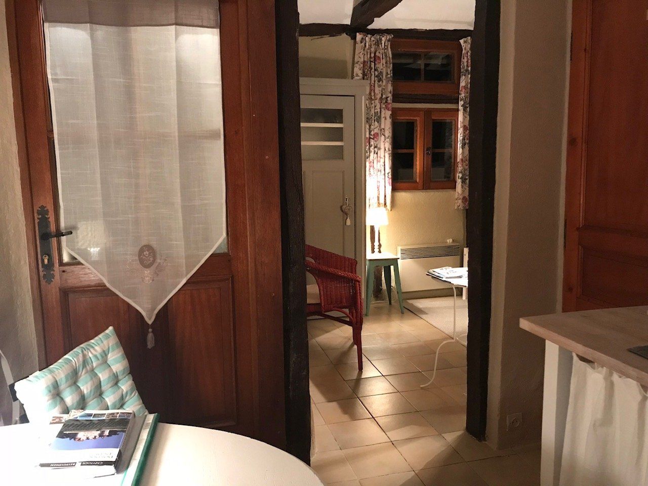 La longue fenêtre de la cuisine dans le pigeonnier offre une belle vue sur le jardin et donne accès à la grande terrasse. Profitez des jeux d'ombre et de lumière sous la pergola et prenez l'apéritif au tronc d'arbre qui fait office de bar. Là, ouvrez les huîtres d'Arcachon que vous avez achetées le matin au marché d'Issigeac ; le tout avec un verre de vin blanc frais...