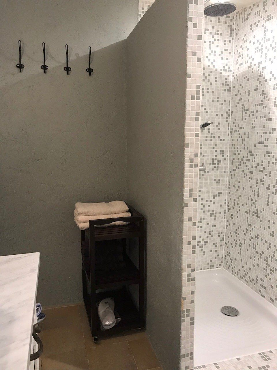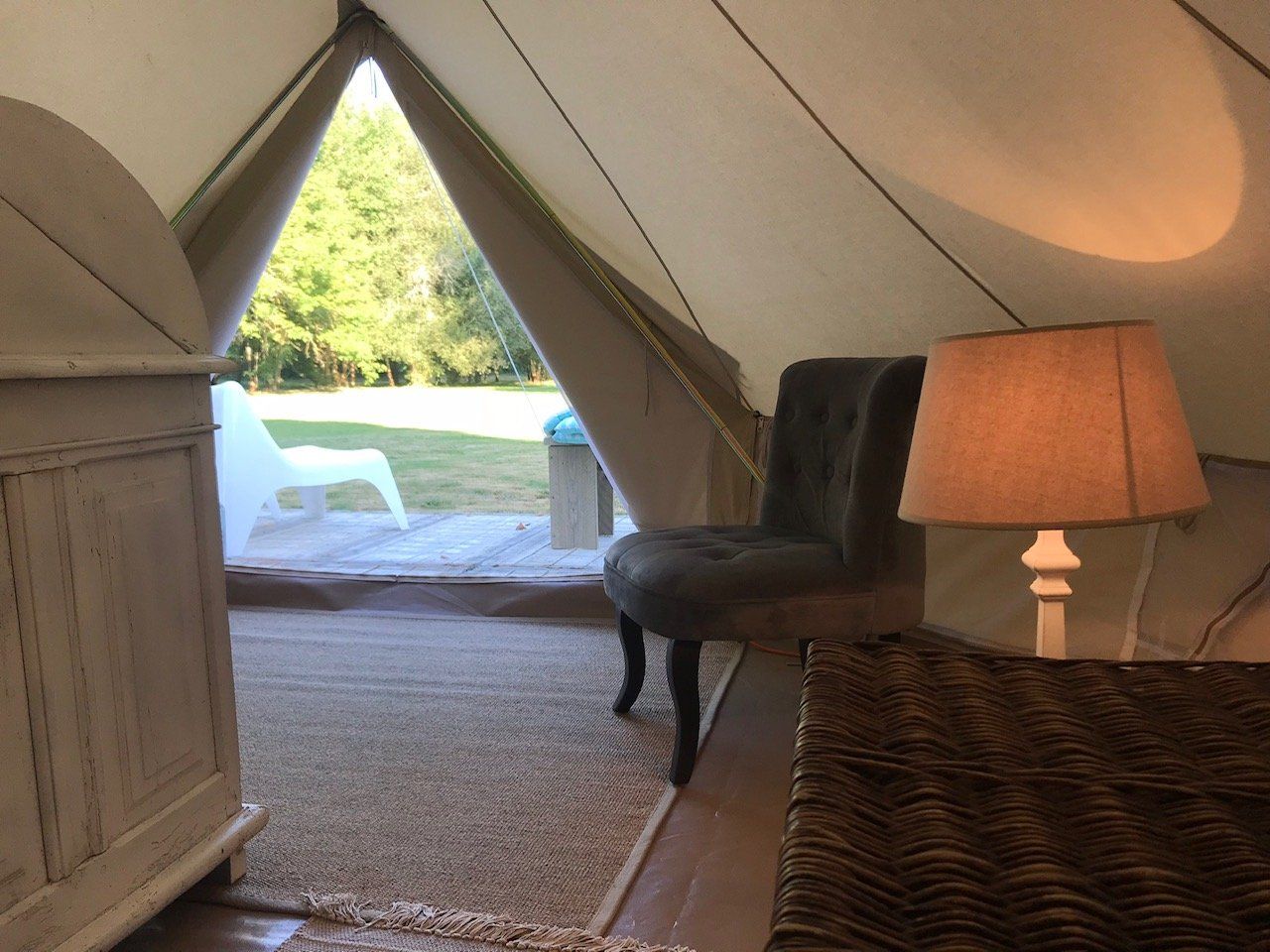 Le pigeonnier authentique a été rénové avec goût en un nid douillet sous le signe de la luxueuse simplicité. Cette jolie petite maison dispose d'une chambre, qui est finie jusqu'au toit et dispose d'un lit mezzanine, avec un lit double de 140 cm en bas et un lit de 90 cm au-dessus. La fenêtre à double vitrage a des volets extérieurs qui s'assombrissent bien et gardent la maison fraîche. La salle de bain dispose d'une spacieuse douche à l'italienne (120 cm) avec douche pluie et robinet thermostatique. La cuisine est équipée d'ustensiles de cuisine et de table, d'une cuisinière électrique (2 plaques), d'un réfrigérateur, d'un évier. Il est fini avec des zelliges marrocaines et dispose d'un espace de rangement pratique. A côté du pigeonnier se trouve la romantique tente de désert de 5 mètres de diamètre et 3 mètres de haut. Cette tente professionnelle Sibley 500 ProTech en toile 100% coton est respirante et résistante à la pluie, aux UV et à la moisissure (www.canvascamp.com). La tente est équipée d'une moustiquaire tout autour afin que vous puissiez ventiler et vous rafraîchir sans que les insectes n'y pénètrent. Un éclairage et un mobilier fixes font partie de cette expérience totale : un lit de 160 cm, des tables de chevet et un banc en bois naturel. Vous pouvez accrocher des vêtements dans le coffre laqué blanc.