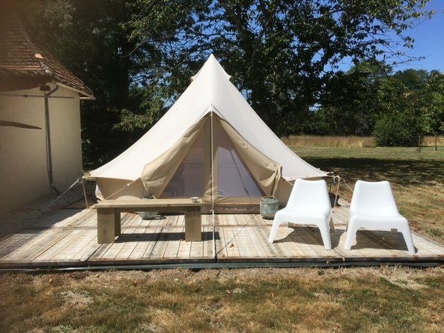 En résumé : Pigeonnier avec chambre à coucher, salle de bain avec douche à l'italienne, cuisine. Tente désert avec mobilier fixe en bois, terrasse, pergola, mobilier extérieur. Jusqu'à 5 personnes.