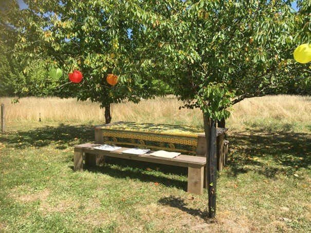 Je bent in een prachtige en natuurlijke setting en de grote tuin is van jou. Grasland met veldbloemen, bos met kastanjelaars en acacia's, cosy boomgaard met laagstammen, je kiest maar waar je wilt wandelen, zitten, liggen. Het terrein is helemaal toegankelijk met wandelpaden en open plekken. In een hangmat onder de bomen, kom je helemaal tot rust. Op een open plek in het gras geniet je tot de laatste zon van een wijntje. Aan de lange tafel in de boomgaard, blijf je onder de lampionnen tot 's avonds laat genieten van een heerlijke maaltijd met plaatselijke specialiteiten van de markt. Of je wilt de kinderen laten kennismaken met de Grote en de Kleine Beer? Je vindt een vuurkorf met boomstammetjes. Blijf er tot het donker is en bewonder de oneindige sterrenhemel.